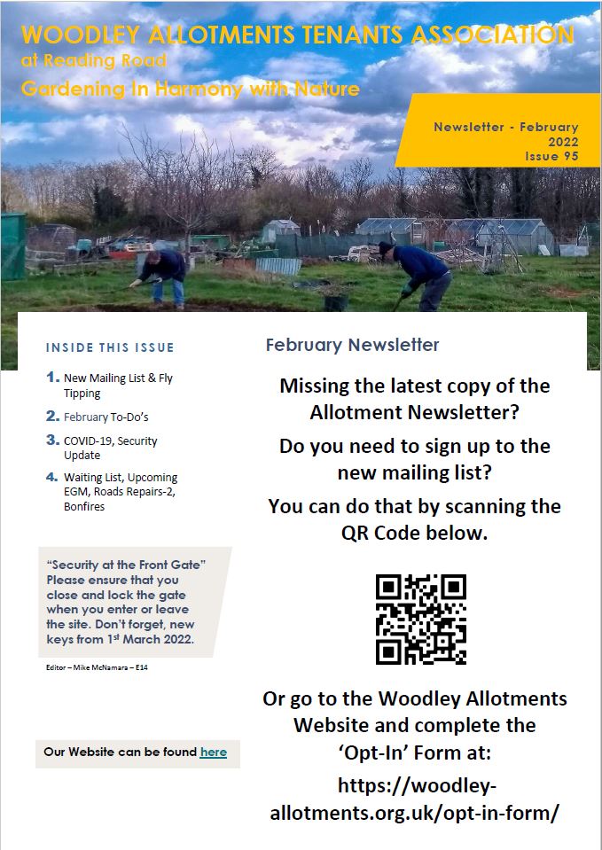 We have just published the February Newsletter using our new mailing list and all seems to have worked well with only one bounce back error!! We have also continued to hand-deliver paper copies to plot holders who do not have an Internet connection.