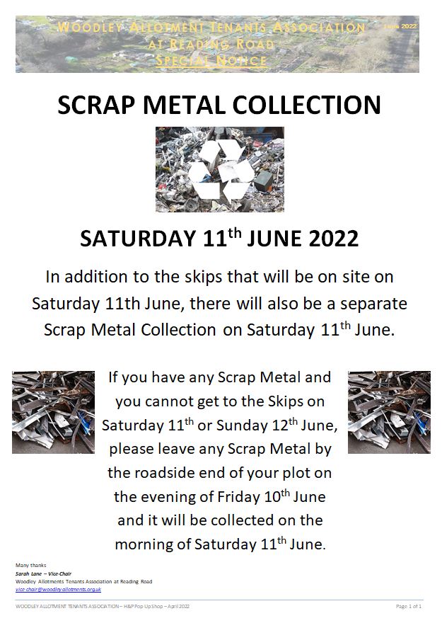 Skips on site and Scrap Metal Collection Posted on 8th Jun 2022 by wallments For all the information about these to items this weekend click on either of the two images below to download a copy. Share this: Click to share on X (Opens in new window) X Click to share on Facebook (Opens in new window) Facebook Like Loading... Related