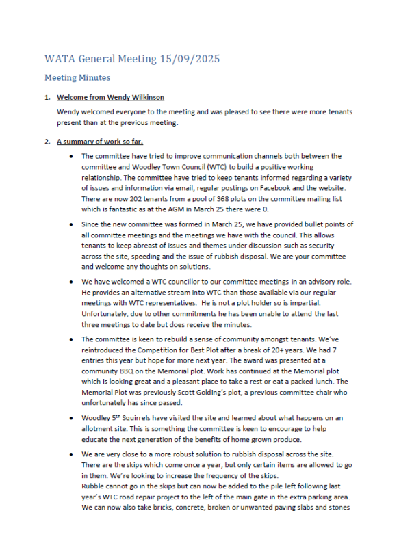 I apologise for the delay in getting these out to everyone. If you have any questions about items in the minutes, please contact us readingroadplots@woodley-allotments.org.uk and the Committee will be happy to provide any information required.