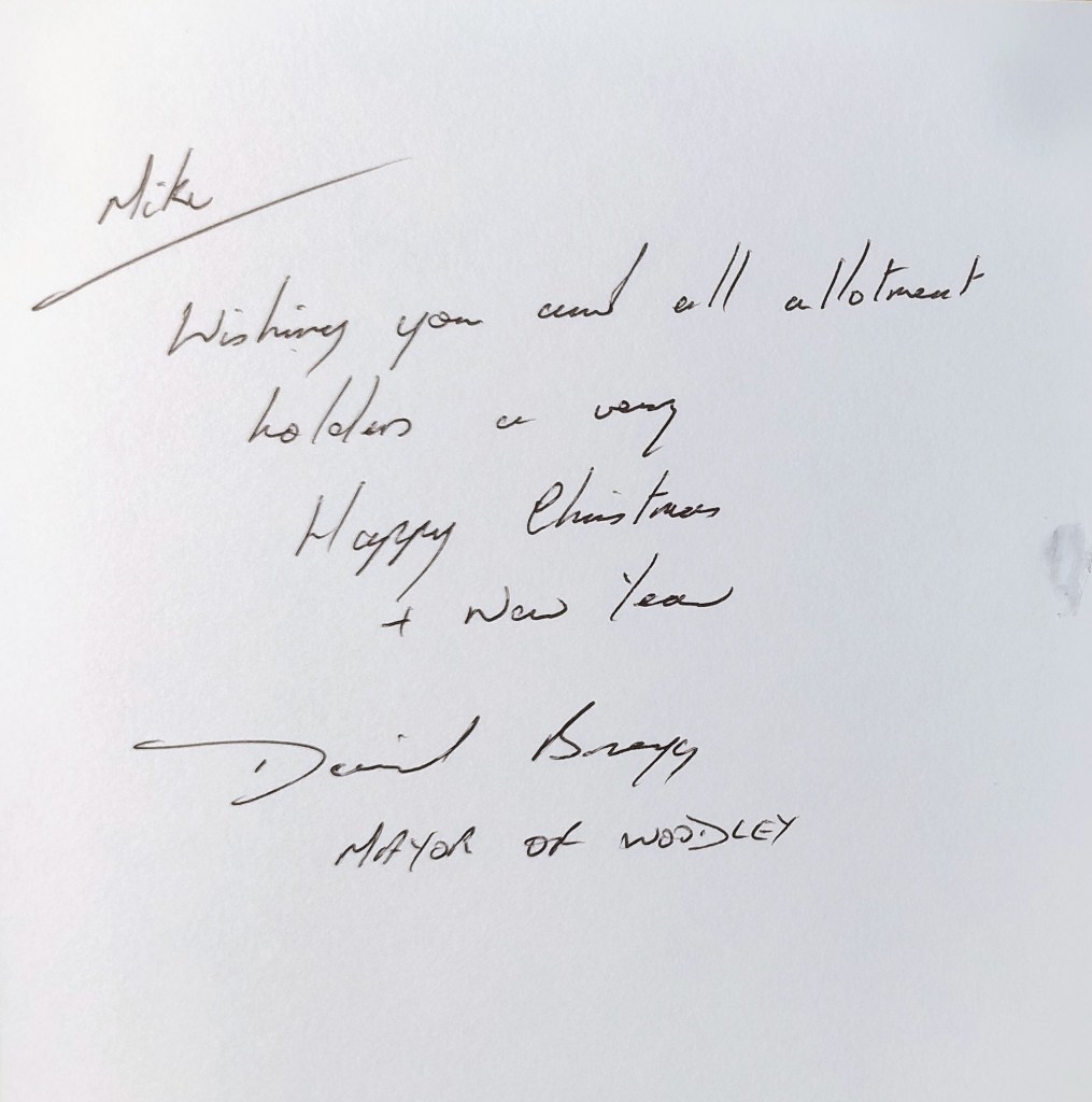 Received in the Post today – Christmas card from the Woodley Mayor Posted on 16th Dec 2025 by wallments Share this: Click to share on X (Opens in new window) X Click to share on Facebook (Opens in new window) Facebook Like Loading... Related