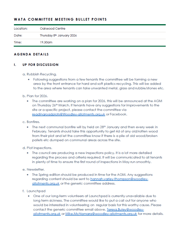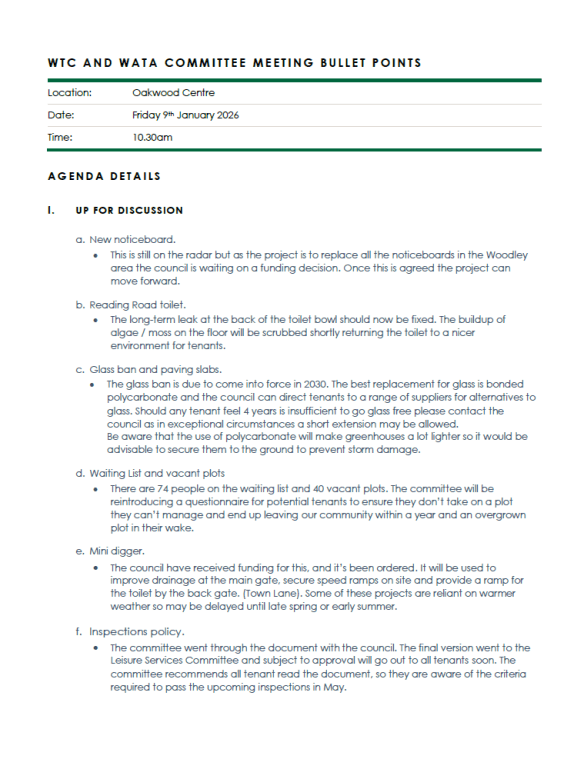 Please find below Bullet Points from our last Committee meeting (8th January 2026) and the last Committee/Woodley Town Council meeting (9th January 2026). Simply click on the image below if you would like a PDF to download and read offline.