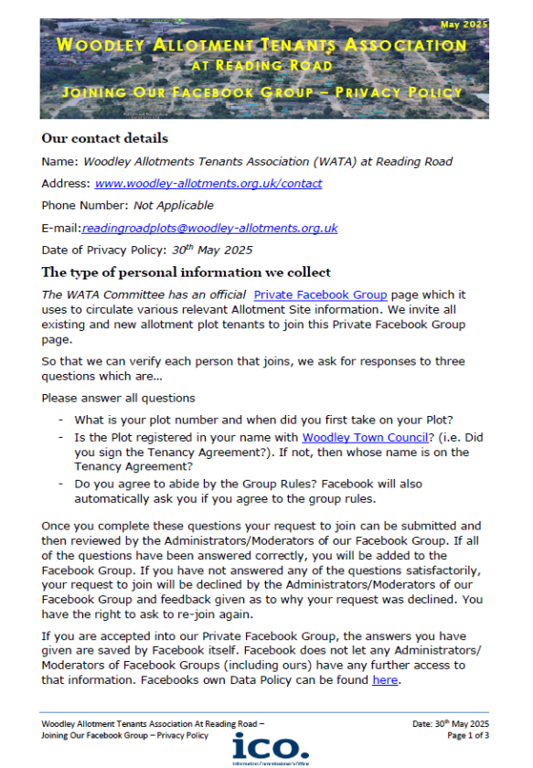 WTC – Allotment Tenancy Agreement & Cover Letter