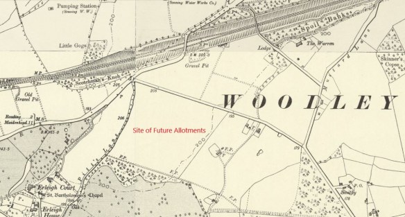 We know that there have been Allotments on this plot of land for quite a while – from at least 1920, this map of 1888-1913 shows the land that would become the allotments; however, we don’t have an actual start date for them.