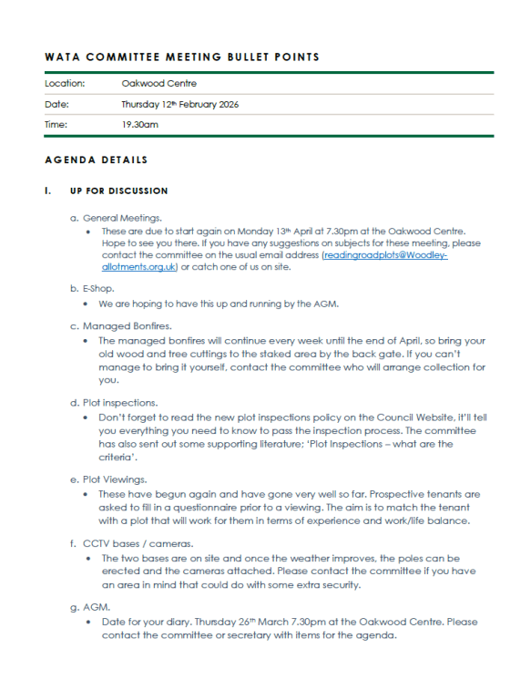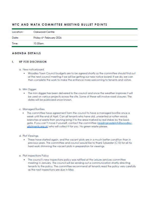 Please find below Bullet Points from our last Committee meeting (12th February 2026) and the last Committee/Woodley Town Council meeting (6th February 2026). Simply click on the image below if you would like a PDF to download and read offline.