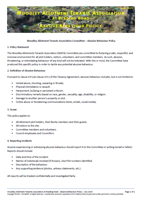 WATA – Abusive Behaviour Policy We have just published an addition to our Admin Policies. You can download your own copy by clicking on the image below.